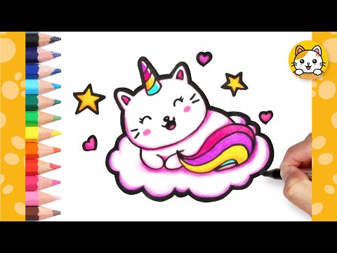 Hi everyone~ Lets learn how to draw and paint a Cute Caticorn | Step by Step Drawing for Kids | Color Pencil Coloring Page ...